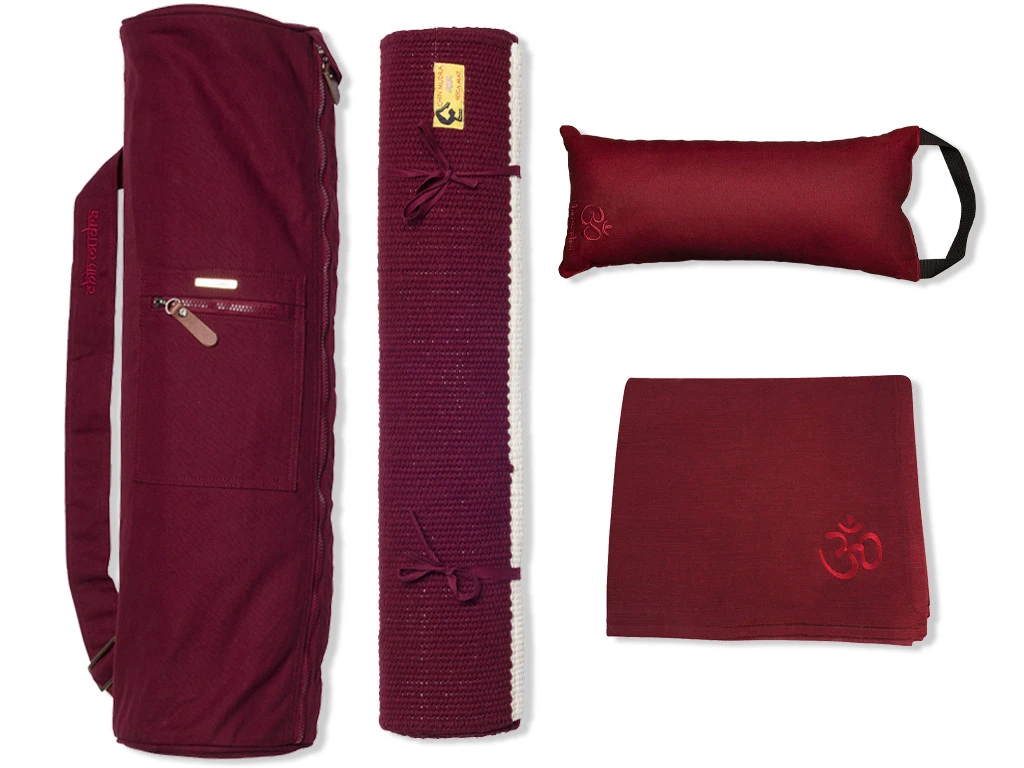 1 Tapis de yoga Taj 100% coton Bio – 2 m x 66 cm x 5mm Bordeaux
