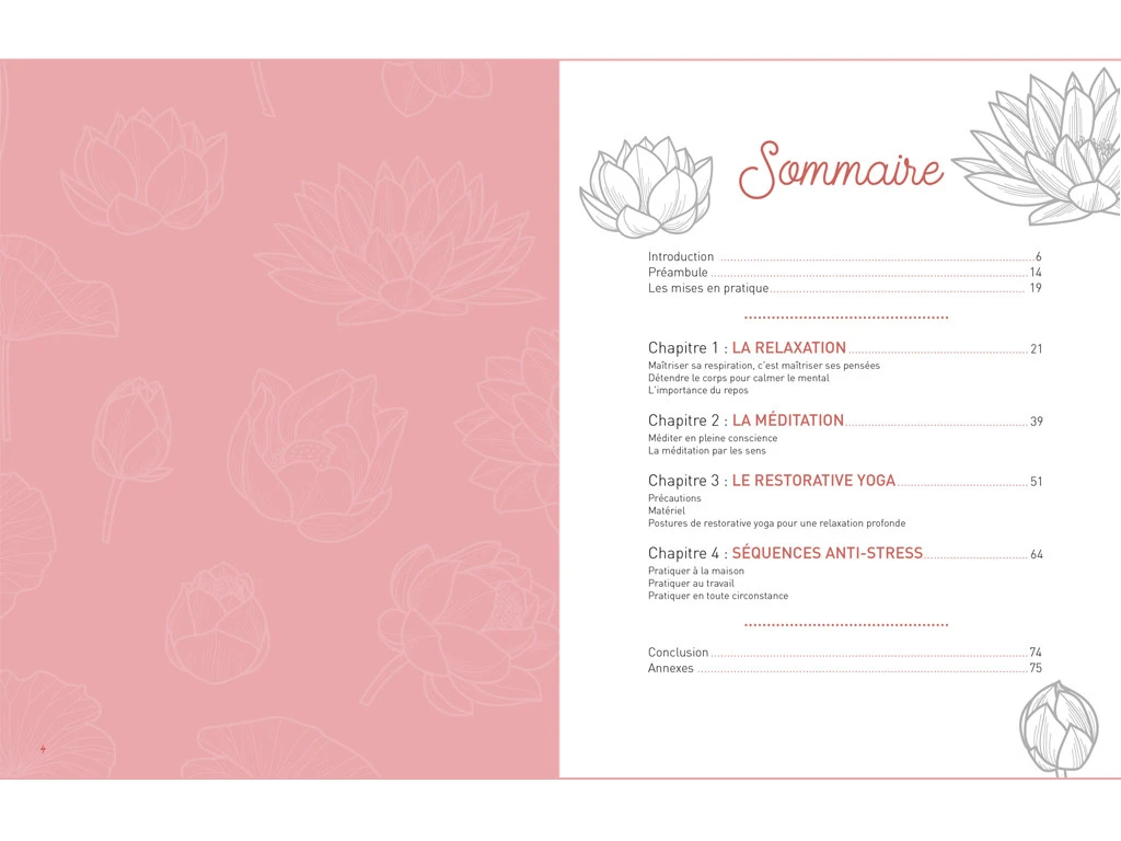 Grâce à des conseils et des exercices adaptés – aussi bien de méditation, de relaxation ou de restorative yoga – à appliquer et à pratiquer chez soi ou même au bureau, apprenez à maîtriser et à vous libérer de votre stress, à détendre votre corps et votre esprit pour retrouver la sérénité dans votre quotidien.